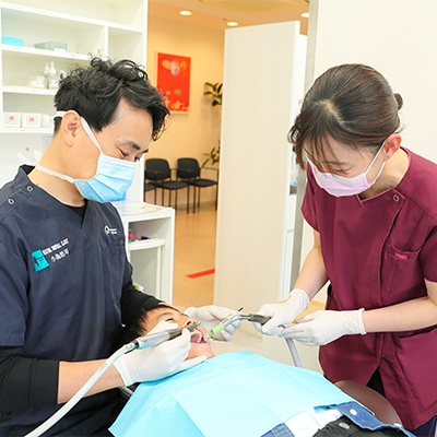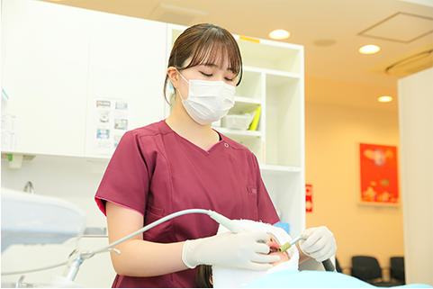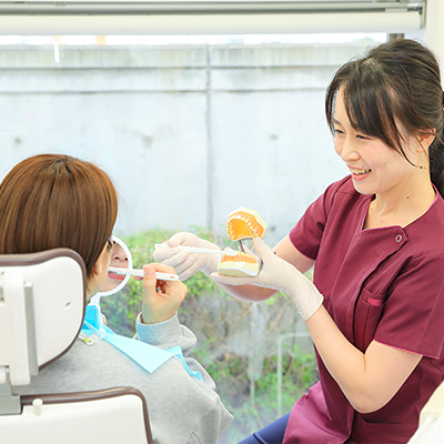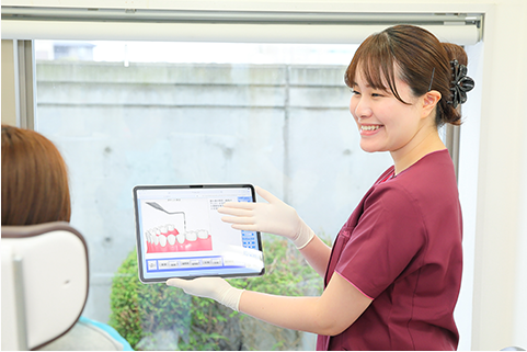 当院では、担当制により毎回同じ歯科医師・歯科衛生士が診療を行います。小さな変化にも気づきやすく、信頼関係を築きながら治療を進められるのが特長です。エアフローや管理栄養士によるサポート体制も整えています。