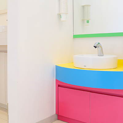 お子さんがいる親御さんは、口腔内に小さなトラブルなどがあっても通院の足が遠のきがちです。当院では、お子さん連れのかたでも通いやすい環境を整えております。無料託児サービスをはじめ、お子さんや親御さんがリラックスして過ごせるところが各種確保されており、ベビーカーや車椅子での乗り入れも可能でございます。