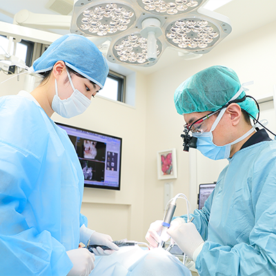 むし歯や歯周病、事故などで歯を失ってしまったかたへ、しっかり噛める機能と自然な見た目を取り戻すインプラント治療をご提案しています。専用のオペ室・歯科用CTを活用し、精密な診断と安全性に配慮した治療を実施し、難症例への対応も含め長期的な安定性にもこだわっています。