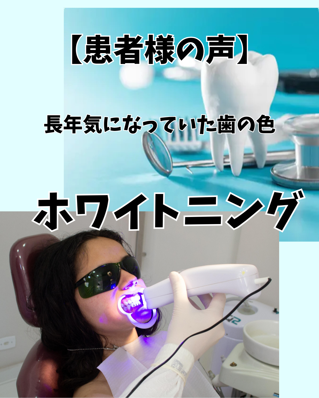 長年悩んでいた歯の色や、歯ぐきからの出血も、歯周病・虫歯の治療、そしてホワイトニングでとても改善しました