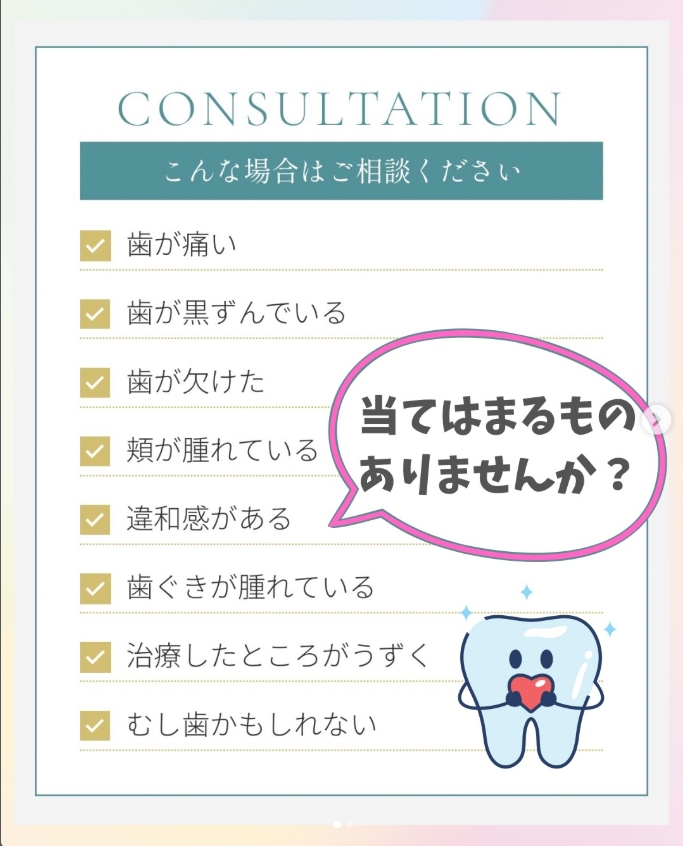 私たち小島歯科は、「困ったときに頼れる存在でありたい」という想いを大切に、日々の診療に取り組んでいます。むし歯や歯周病といった一般的なお悩みから、入れ歯やインプラント、矯正治療、審美的なご相談まで、幅広い分野に対応し、どんな患者さんにも安心してご来院いただける体制を整えています。地域のかかりつけ医として、一人ひとりのお話を丁寧にうかがい、必要な検査や治療をしっかりご説明したうえで進めることを意識し、お子さんからご高齢のかたまで、世代を問わず通える歯科医院として、地域に根ざした信頼関係を築いていけるよう、これからも誠実な診療を重ねてまいります。