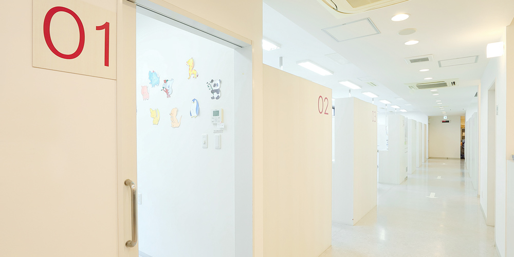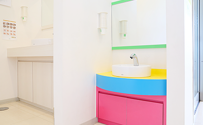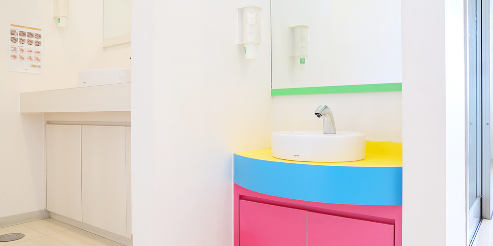 お子さんがいる親御さんは、口腔内に小さなトラブルなどがあっても通院の足が遠のきがちです。当院では、お子さん連れのかたでも通いやすい環境を整えております。無料託児サービスをはじめ、お子さんや親御さんがリラックスして過ごせるところが各種確保されており、ベビーカーや車椅子での乗り入れも可能でございます。