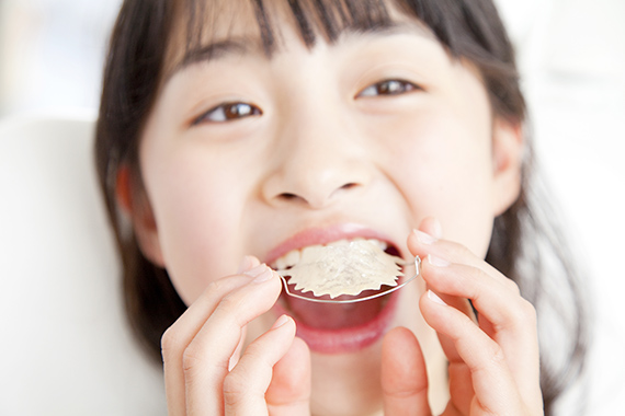 お子さんの口腔内は、歯の生え変わりや顎の成長などによって日々変化していきます。当院では、お子さんの状態をしっかりと把握して、一人ひとりに合った治療方法をご提案させていただきます。ご希望や口腔内の状態に応じて、適切な装置や進めかたなどを選択しますのでご安心ください。