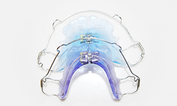 乳歯と永久歯が生えている混合歯列期に使用する矯正器具であり、レジンでできた床にワイヤーなどが組み合わさっています。顎を広げることを目的としており、永久歯がきれいに並ぶスペースを確保する効果があります。