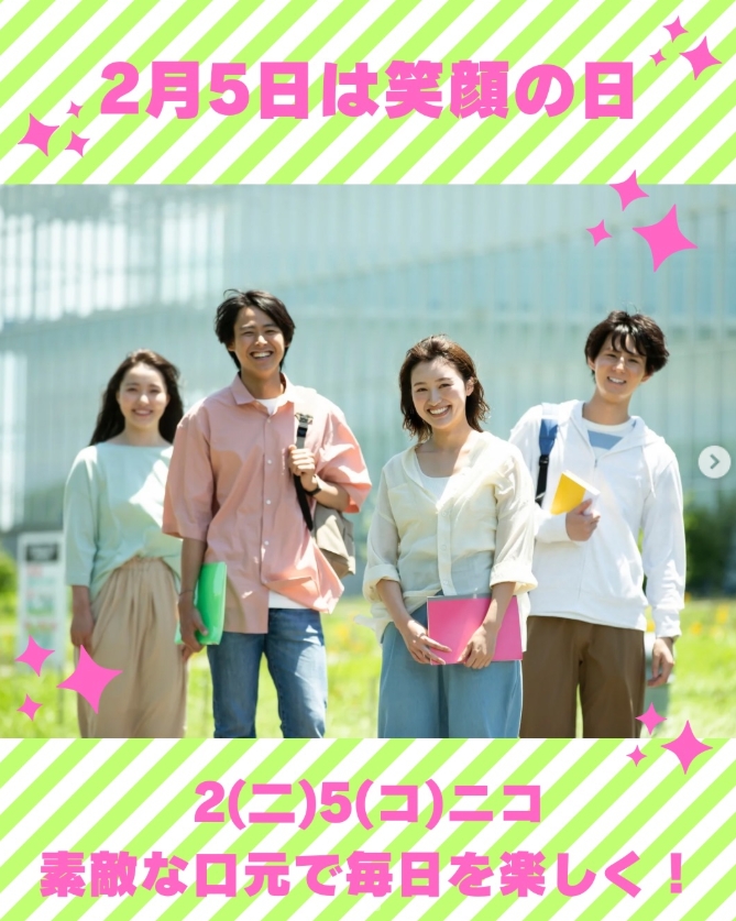 今日2月5日は笑顔の日 2(二)5(コ)ニコと読む語呂合わせから 誰もがニコニコいつも笑顔でいられるような 明るい社会をとの…